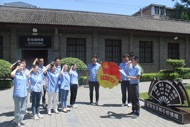 參觀完展館后,公司團(tuán)委書記結(jié)合西安事變的背景及意義,以抗日戰(zhàn)爭為主線,開展了專題黨史學(xué)習(xí)教育團(tuán)課。并帶領(lǐng)全體團(tuán)員進(jìn)行重溫入團(tuán)誓詞、在紅色教育和黨史洗禮中暢談理想信念等系列活動。