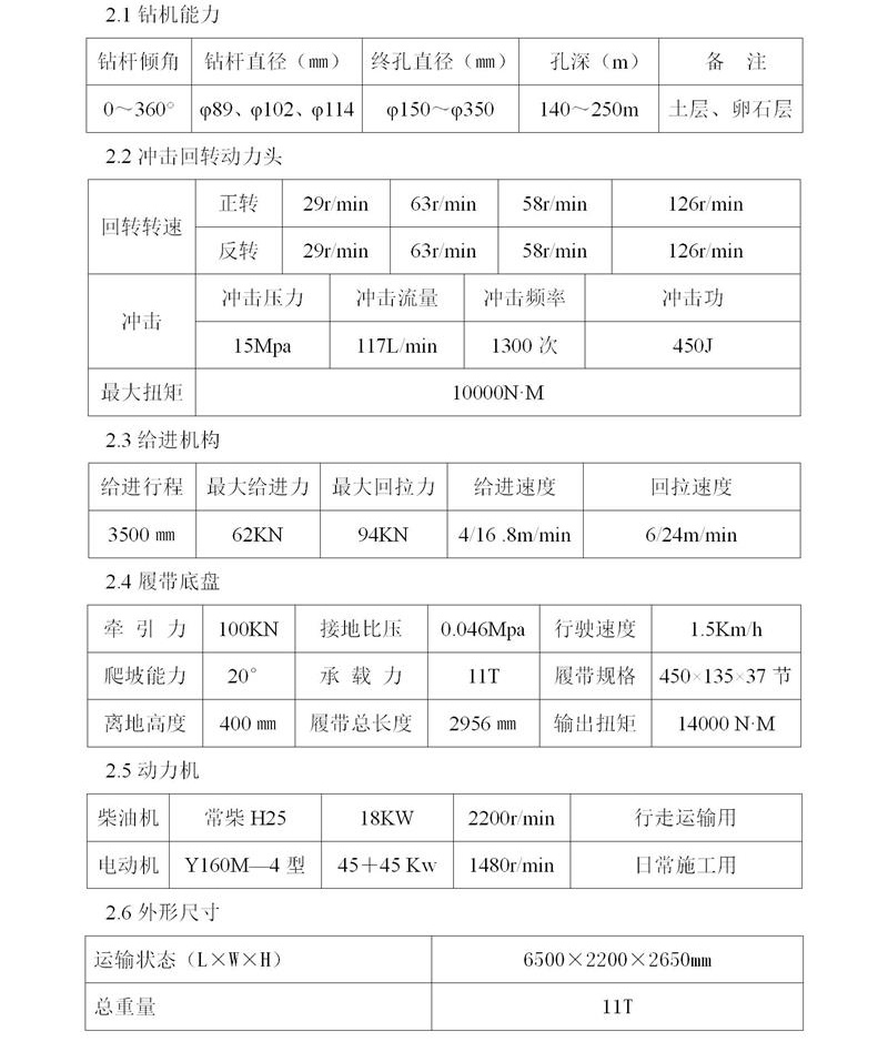 全液壓控制,機身結構堅固,設計理念先進,儀表監(jiān)控,操作靈活方便,充分保證設備的實用性能。設備采用電動機作為主動力源,并且備有一個18Kw的小柴油機作為無電源時行走及搬運上下車時使用。電機總功率為90KW,其中用于用于動力頭回轉(zhuǎn)的有65Kw,所以鉆機回轉(zhuǎn)扭矩比同類型的要大將近一倍,沖擊力和提升力都非常強大,工作效率高,可一機多用,以邊坡錨固工程施工為主,也可以廣泛用于建筑深基坑、地鐵、隧道、鐵路、公路、地質(zhì)災害治理的錨固施工和小型樁的施工。
