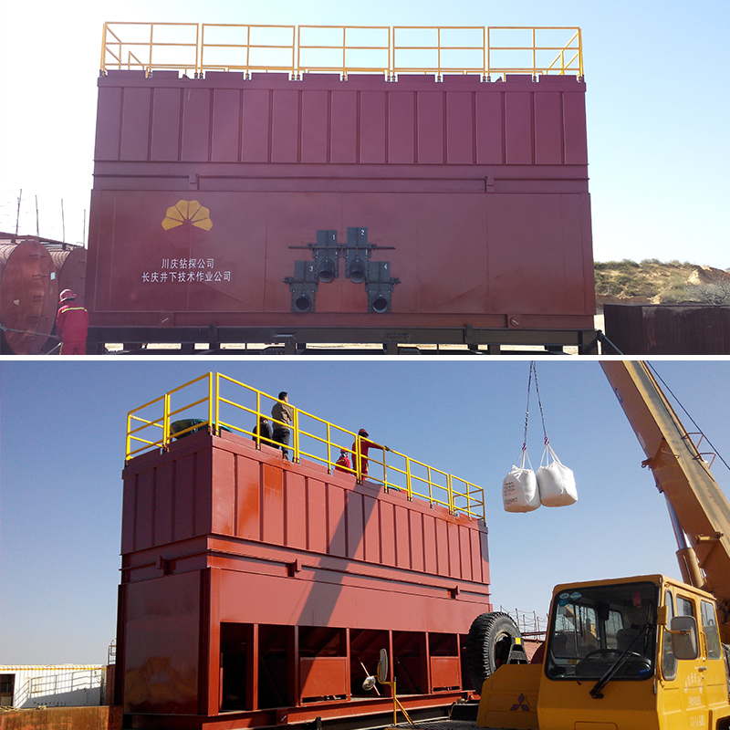 100立方沙漏主要用于石油鉆探壓裂,此設(shè)備可將大量壓裂鉆探所需的砂礫或者陶粒進(jìn)行整裝分層儲(chǔ)備,配合取砂車進(jìn)行石油壓裂鉆井作業(yè),效率大幅度增加。