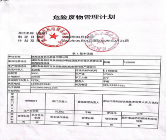 我公司屬機電一體化、機械加工等產(chǎn)業(yè)的生產(chǎn)及經(jīng)營活動, 現(xiàn)階段主要的危險廢物包括:油漆桶、廢機油、乳化液、噴漆、噴砂。油漆桶、廢機油、乳化液等危險廢物處置由陜西明瑞資源再生有限公司承接轉(zhuǎn)運及處理危廢;噴漆、噴砂房等由公司投入大量資金進行升級改造,在經(jīng)營活動中加強職工環(huán)保培訓(xùn),不斷提升職工環(huán)保意識。經(jīng)陜西格林秦灃環(huán)??萍?/span>有限公司監(jiān)測,所排廢氣均達到國家標準。為改善環(huán)境、大氣質(zhì)量作出積極的貢獻。