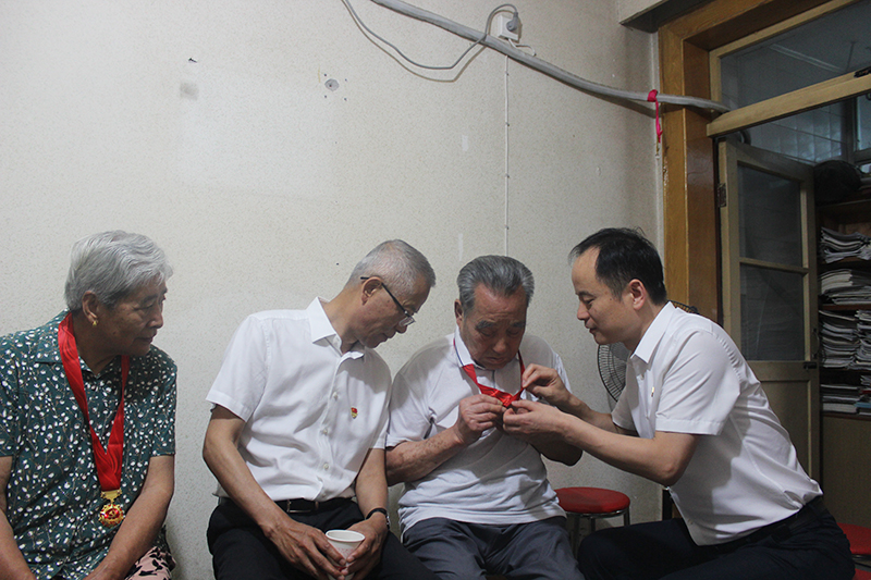 在小區(qū)離退辦,王建國(guó)詳細(xì)詢問(wèn)了老人們的身體狀況、生活情況,囑咐老人要注意保重身體,并叮囑隨行人員一定要結(jié)合黨史學(xué)習(xí)教育,帶著感情、帶著責(zé)任幫助他們解決實(shí)際困難,落實(shí)好各項(xiàng)政策,照顧好日常生活,讓他們切實(shí)感受到組織的溫暖、幸福愉快地安享晚年。他為在黨50年的老黨員們親手佩戴了黨中央頒發(fā)的“光榮在黨50年”紀(jì)念章,并與部分老黨員進(jìn)行了座談。佩戴上黨章的老黨員們熱淚盈眶,激動(dòng)地唱起《沒(méi)有共產(chǎn)黨就沒(méi)有新中國(guó)》等革命歌曲,慷慨激昂的旋律,高亢熱情的聲音,彰顯了老一輩共產(chǎn)黨員初心不改的熱忱。大家紛紛表示深切感受到了以習(xí)近平同志為核心的黨中央的關(guān)懷和溫暖,要始終牢記黨的宗旨,聽(tīng)黨話、感黨恩、跟黨走,力所能及地發(fā)揮老黨員的余熱,用實(shí)際行動(dòng)為公司高質(zhì)量發(fā)展鼓勁加油。
